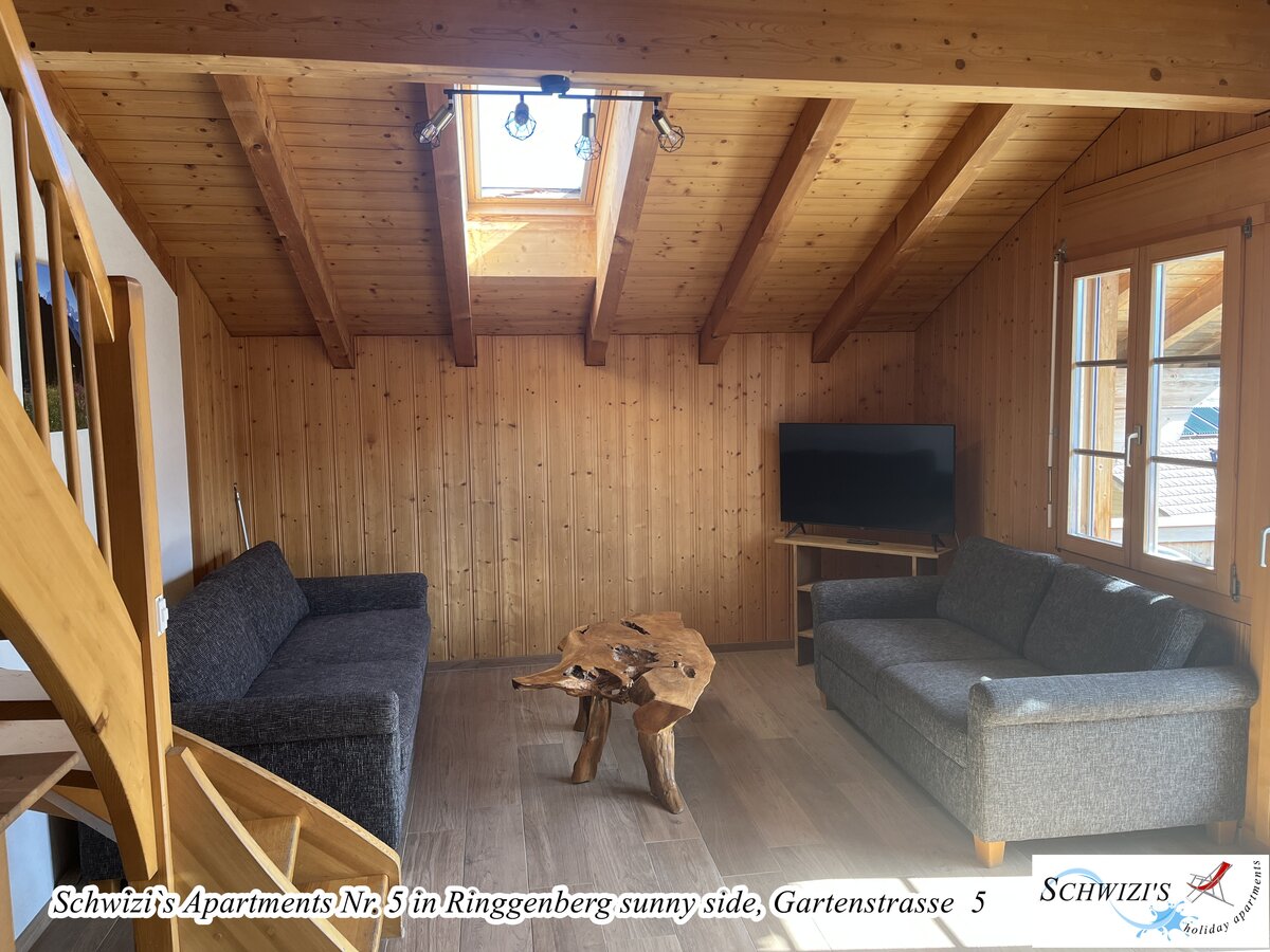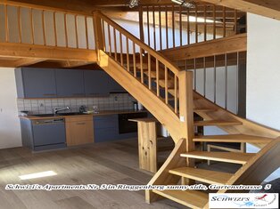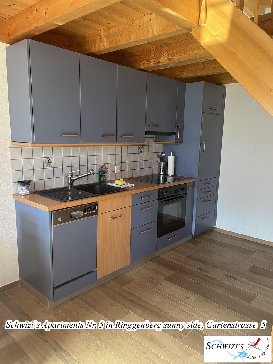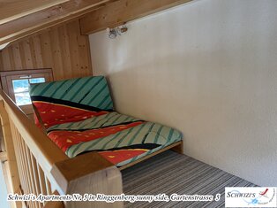Wohn-/Esszimmer mit Sofa, Esstisch. Offene Küche mit Geschirrspüler. 1 Schlafzimmer mit Doppelbett. Schlafgalerie mit 3 Betten unter dem Dach (nur teilweise Stehhöhe). 1 Badezimmer mit Badewanne/WC. Balkon 9,4m2 mit wunderschöner Seesicht und Bergsicht.